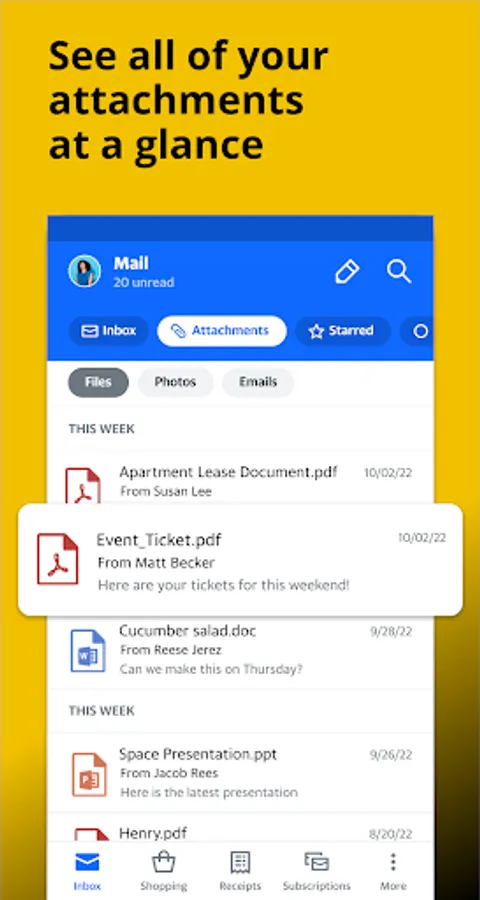 - Preview all your attachments in a single tab, no more searching.