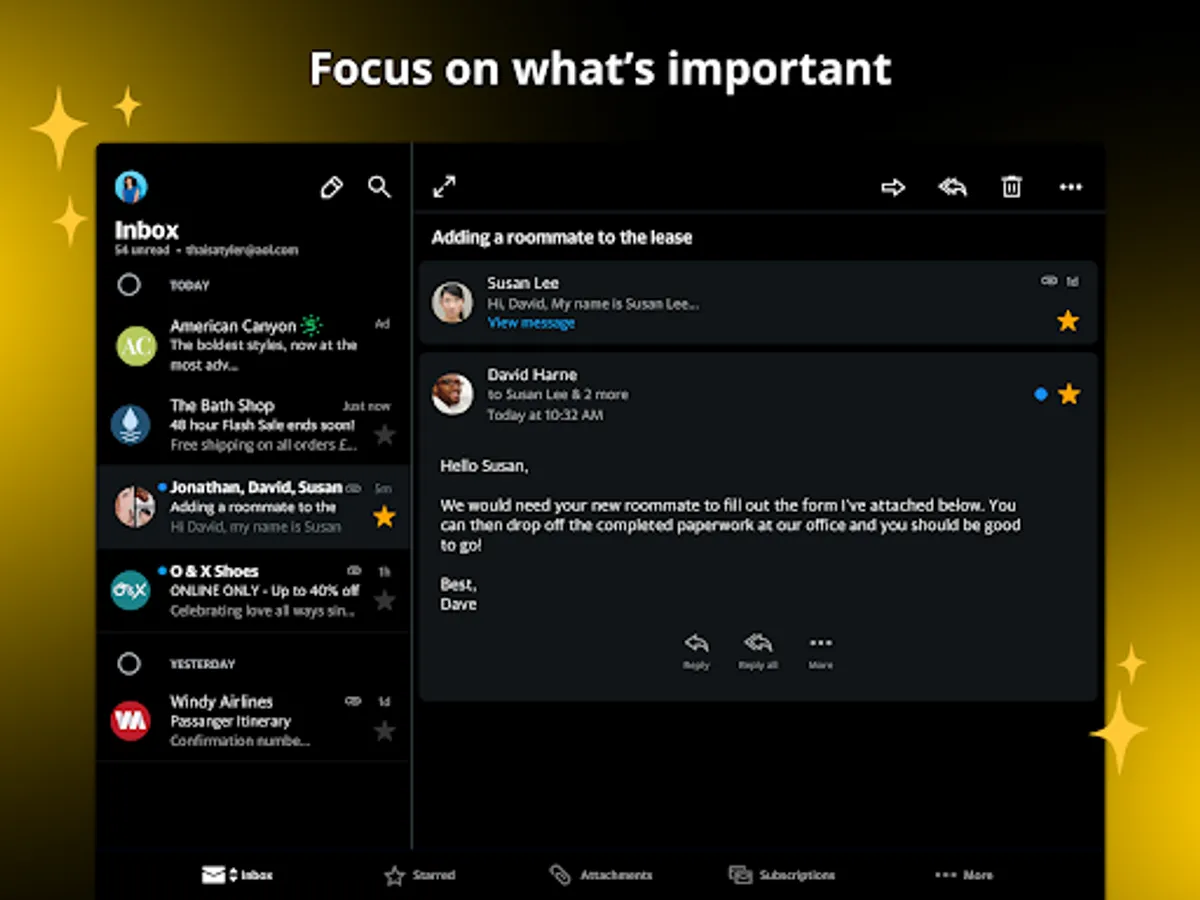 Our premium quality editorial news sources means that you will never see low-quality editorial content that you don’t want or need; the email tab is structured so that you are in full control of your email, quickly and easily defeating spam with a single touch of a button. Secure your digital space, and start using the AOL app today.