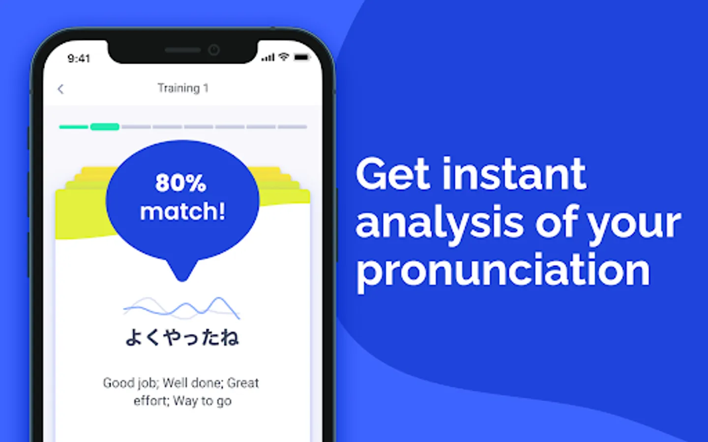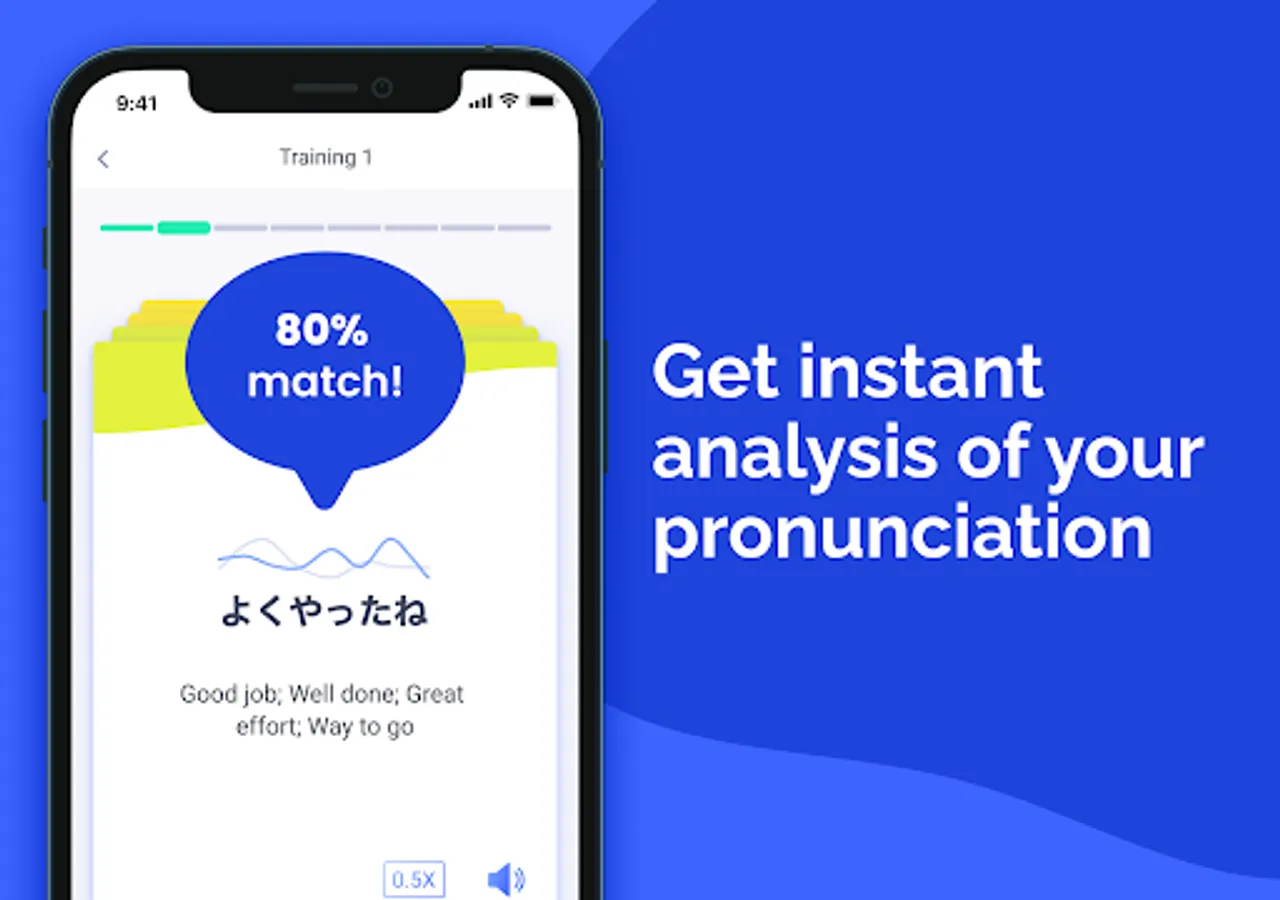 The unique feature of Aomi is its visualized pronunciation. You are not only comparing yourself with the native speaker just by listening to pronunciation, but also by actually seeing how well you match it.