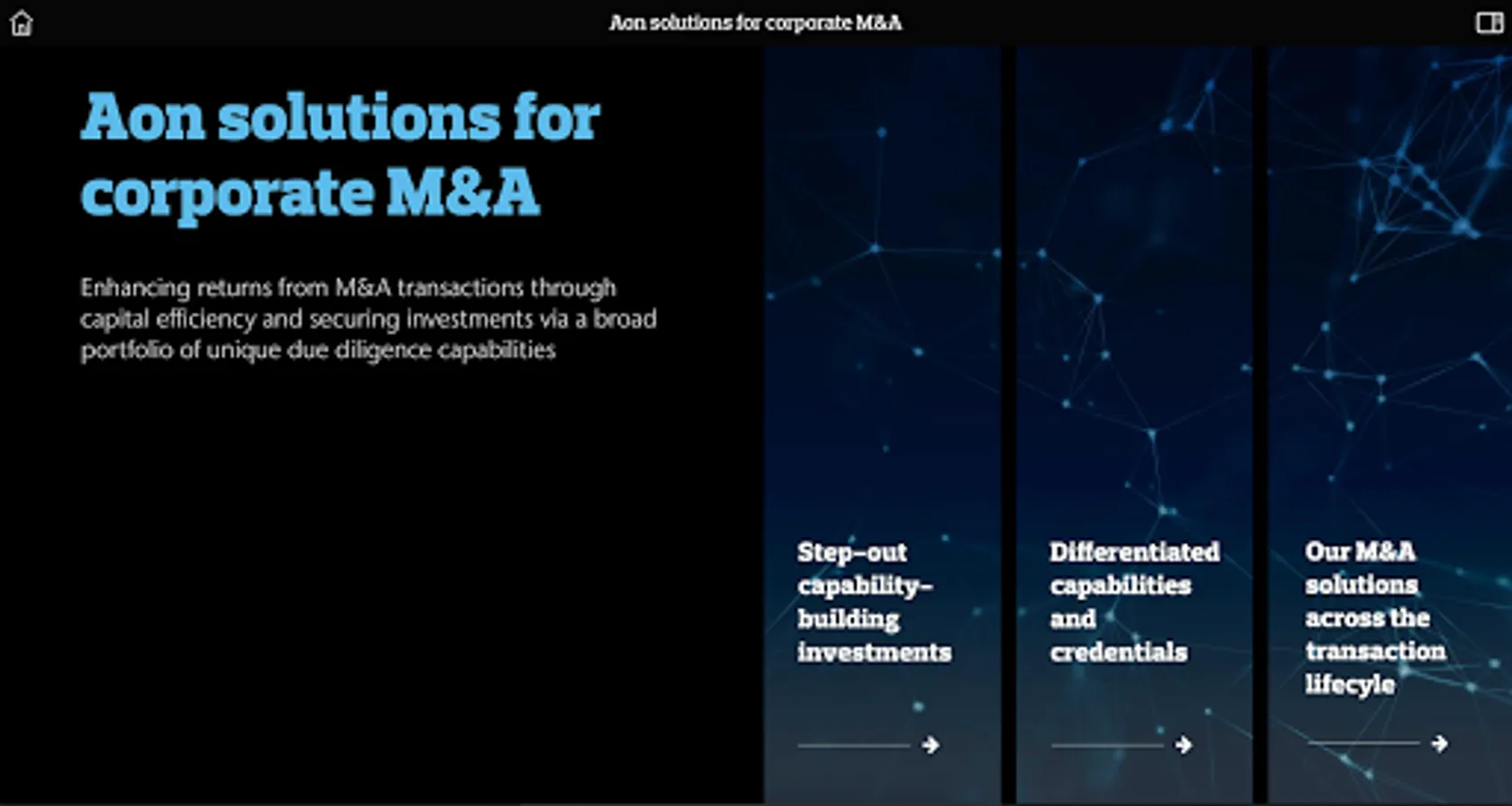 Aon's M&A Transaction Solutions team provides advisory services and bespoke insurance, debt enablement and contingent capital solutions across the globe and throughout the lifecycle of an M&A transaction, enhancing returns through capital efficiency and securing investments via a broad portfolio of unique diligence capabilities.