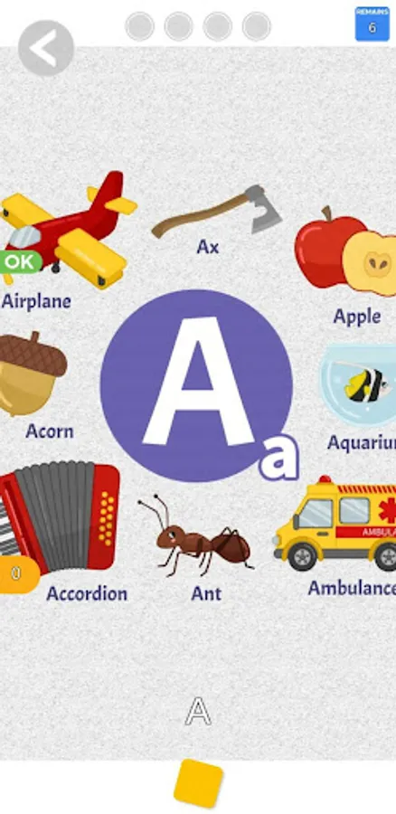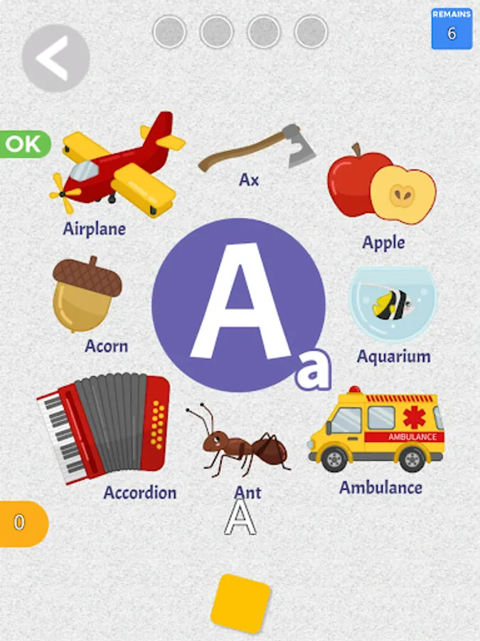 -[EASY Mode]: This is a learning stage for preschoolers. In addition to basic alphabet learning, basic English learning is conducted with various pictures of animals, numbers, colors, fruits, people, objects, and professions.