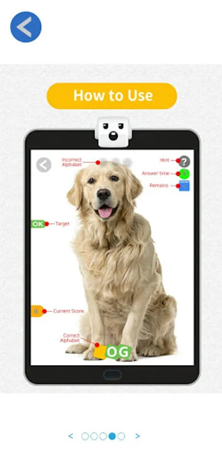 -[Two-player competition mode]: After two learners share the blue and red alphabet cards, the person who first submits the corresponding alphabet card by looking at the picture displayed on the screen gets more points. It is good if 2 infants, or a parent or teacher, participate with the child.