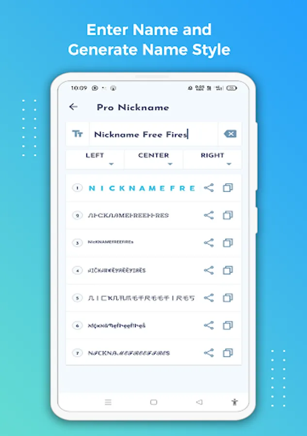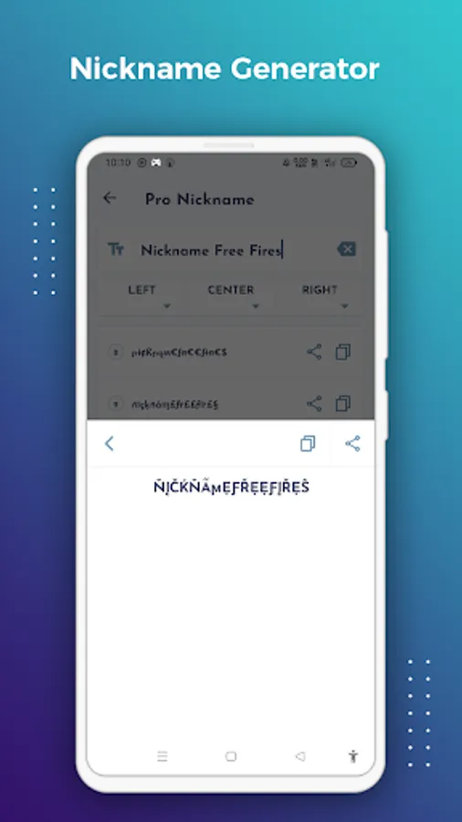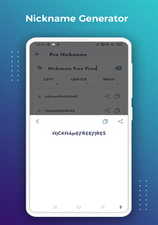 Be unique! Nickname creator with random name generator in one app. Use aesthetic symbols and fancy text in your FF nickname. Our username generator will help you to have the coolest nick among all players. Create unique ff name style - ff nickname