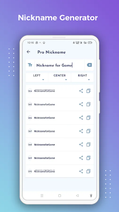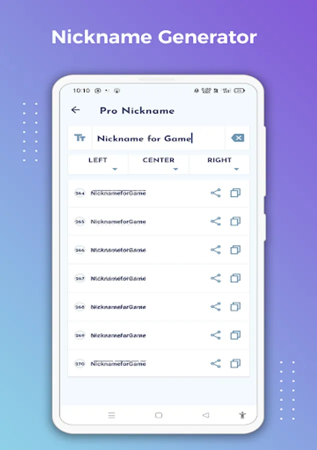 ✔️ Nickname finder app make cool gaming or social media channels nicknames easy.