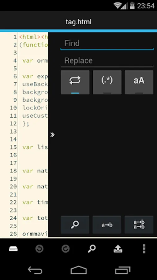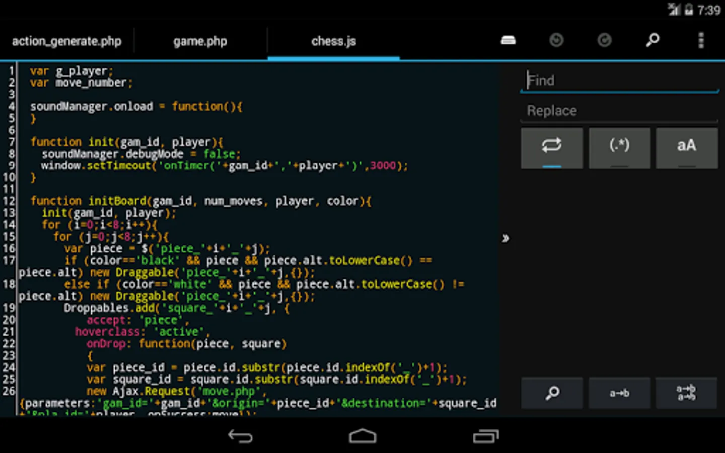 DroidEdit is a text and source code editor for android tablets and phones with the following features: