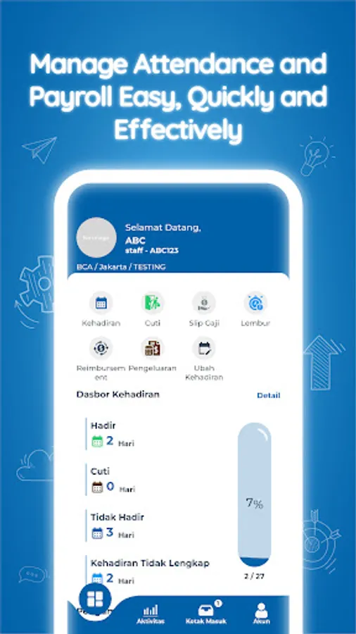mtraxx mobile payroll system and mobile attendance as well as several other functions such as applying for leave, applying for overtime, submitting reimbursement and managing employee absence data which is the basis for calculating employee salaries. The mtraxx service is also used as an application to process employee salary calculations that are already standard calculations that have taken into account BPJSTK, BPJS Health, as well as PPH 21 deductions and other matters related to the payroll process as well as budget monitoring and employee attendance.
