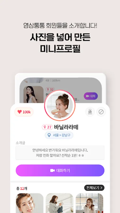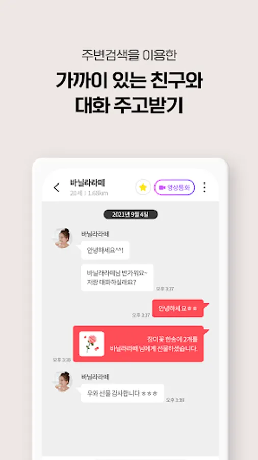 You can immediately enjoy video calls and conversations with real-time connected members.