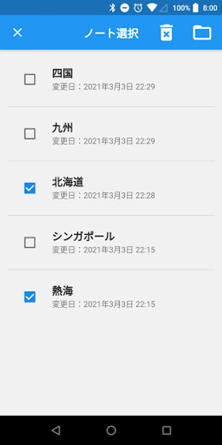 When inside a folder, the color of the headers and buttons changes to the color of the folder.