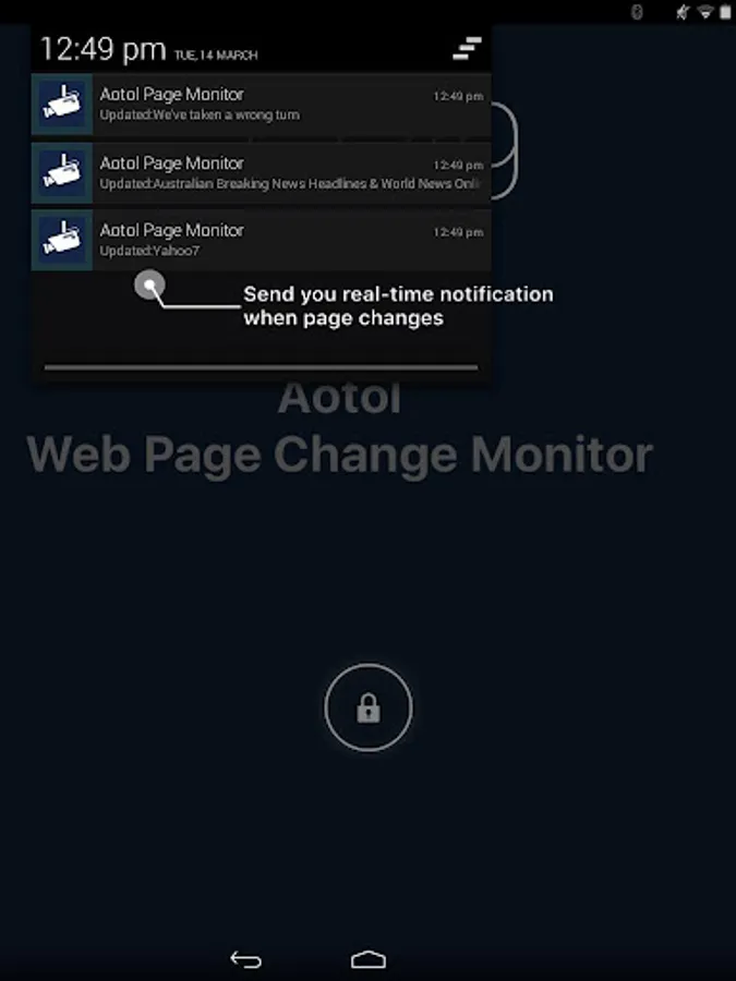 Aotol tracks web page changes even when app is running in background on not running at all. We send you push notification the page change. In short, it is a great page monitor.