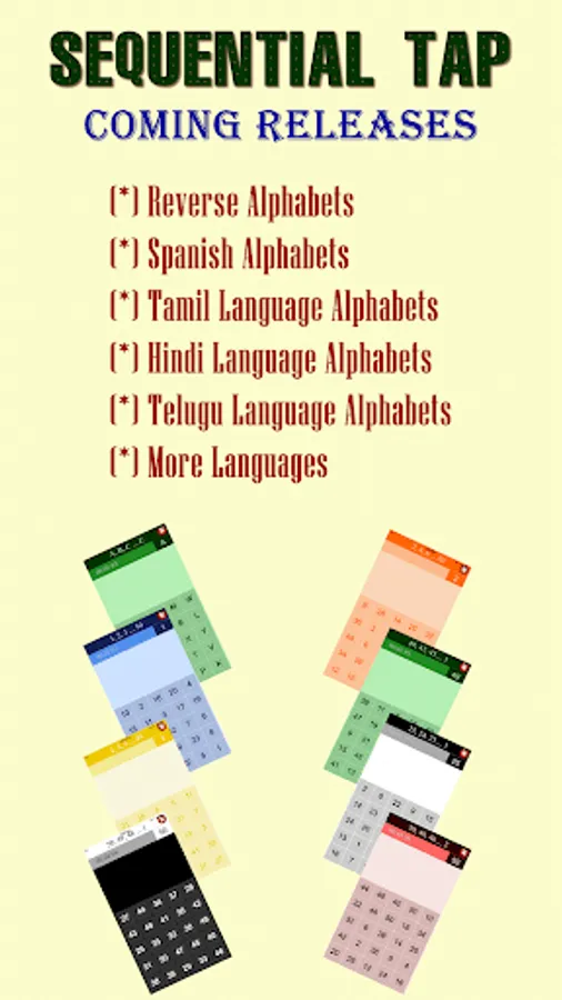In version 1 we have Numbers and English Alphabets. In the future release we plan to add more languages like Spanish, Russian and other languages.