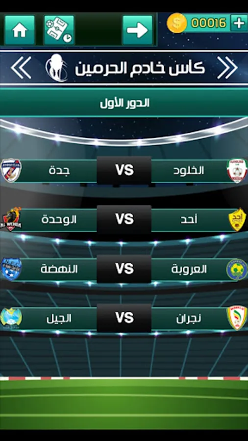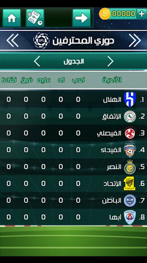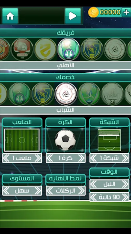 Abha, Al-Adala, Al-Ahly, Al-Ittifaq, Al-Faisaly, Al-Fateh, Al-Fayha, Al-Hilal, Al-Hazm, Al-Ittihad, Al-Nasr, Al-Raed, Al-Shabab, Cooperation, Unity, Dammak. Then you can play friendly matches alone or against friends as you can compete for the title of Prince Mohammed bin Salman Professional Cup.