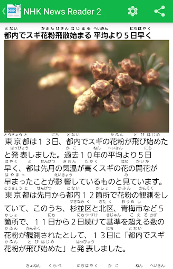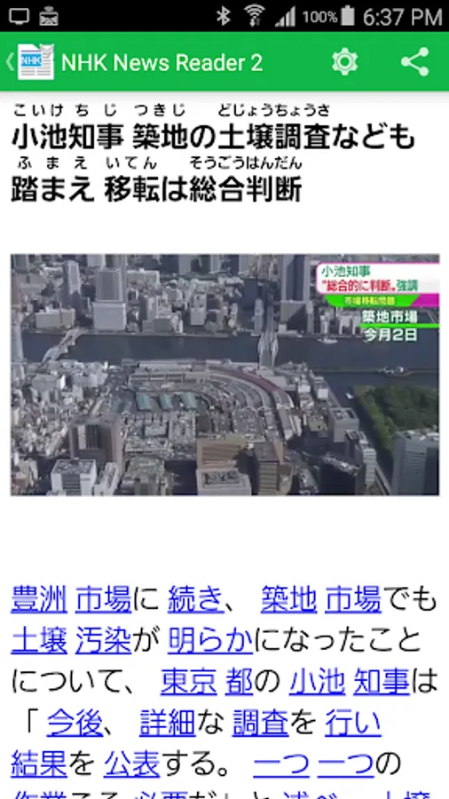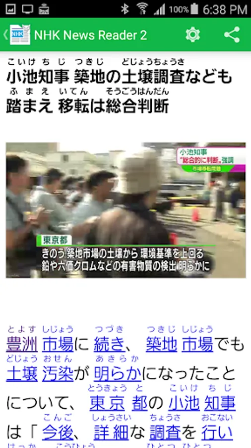 This app lets you watch and read daily Japanese news provided by NHK NEWS with furigara for Kanji reading, Dictionaries for meaning search and it is totally free!