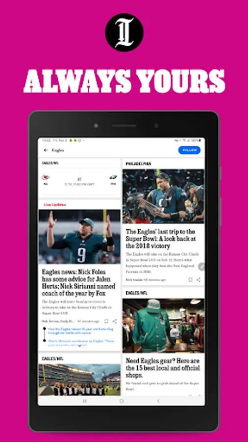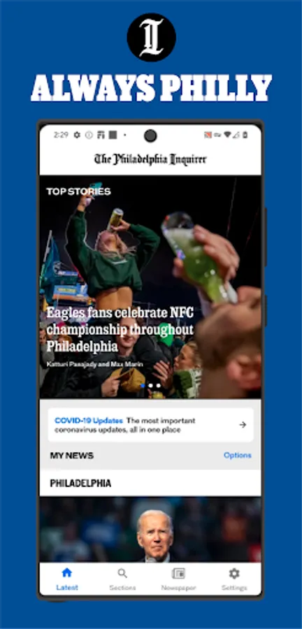• Explore the news topics you care about from sports teams like the Eagles and Phillies to local news with our seamless section navigation.