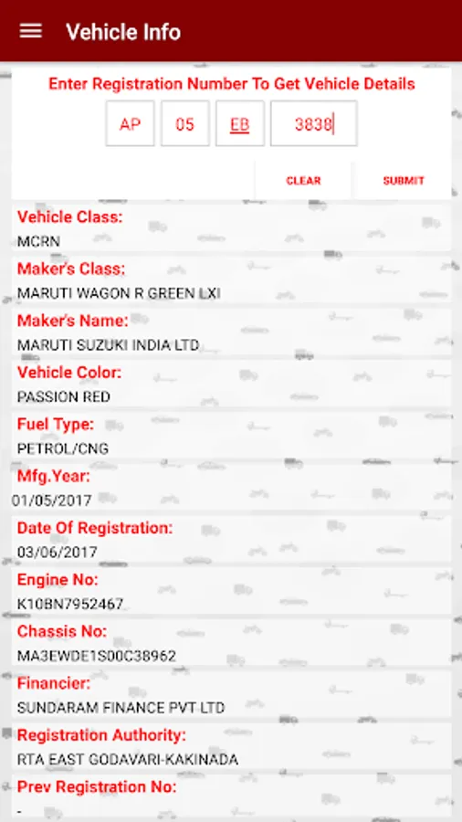 By Using this Vehicle Information app we can know the following details of vehicle or vahan