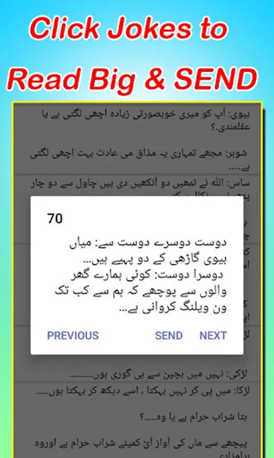 Hd graphics urdu jokes app and very lite graphics to make it smooth on all devices with chutkule paheliyan bujho to jane also urdu jokes in this urdu jokes app.