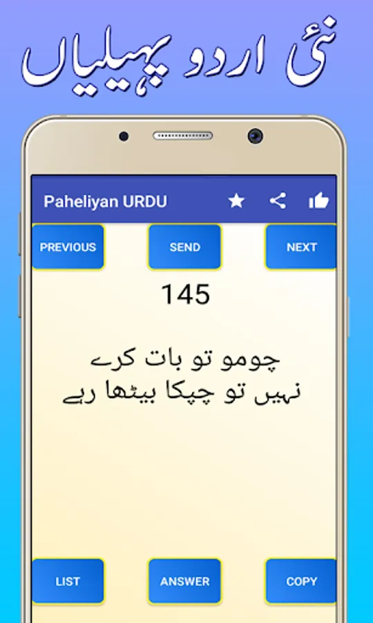 paheli Yeh urdu paheliyon ki application paheliyan with answer in urdu hy jis mien aap paheliyan chutkule parh sktay hien aur asani sy doston ko detective paheliyan bej aur poch sktay hien paheli wali app.
