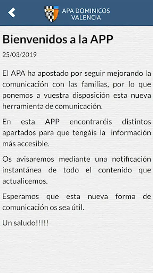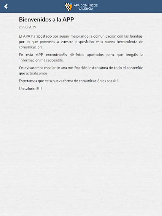 From this APP, we will keep you informed by instant notifications of all the activities, news and events that we make, we will also send you all the information that we understand is of interest in the education of your children.