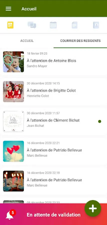 - Download the documents shared by the residence team: Newsletter, menu, CSV report, etc ...