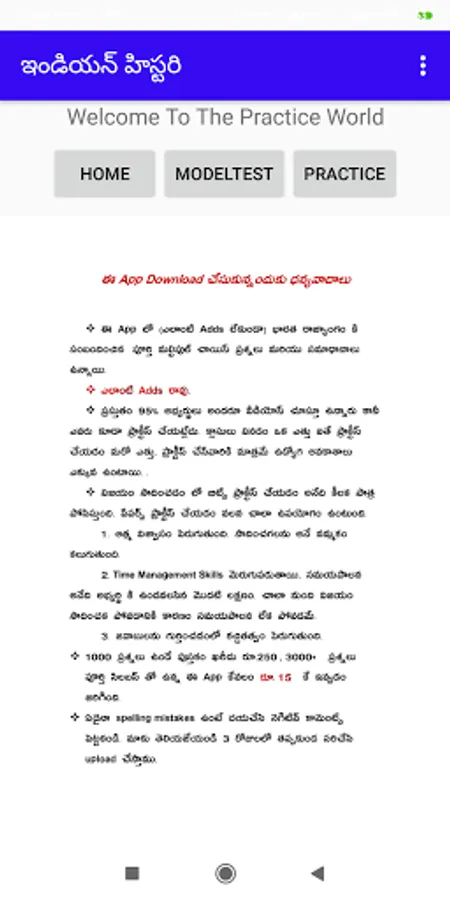 ఈ ఆప్ లో ఇండియన్ హిస్టరీ , పాలిటి, జాగ్రఫీ, ఏపీ హిస్టరీ, జాగ్రఫీ ప్రాక్టీస్ బిట్స్ మరియు ఇతర సబ్జెక్టులకు సంబందించిన బిట్స్ కలవు