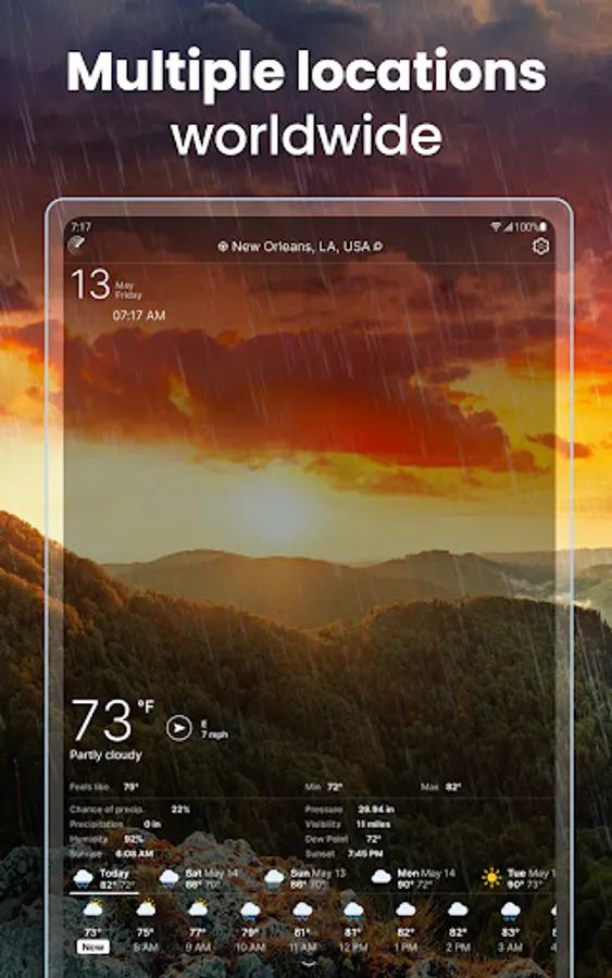A clear and simple live weather app will show you everything you need to know about the weather in any part of the world. Monitor the temperature, precipitation, wind, rain, and more in multiple locations.