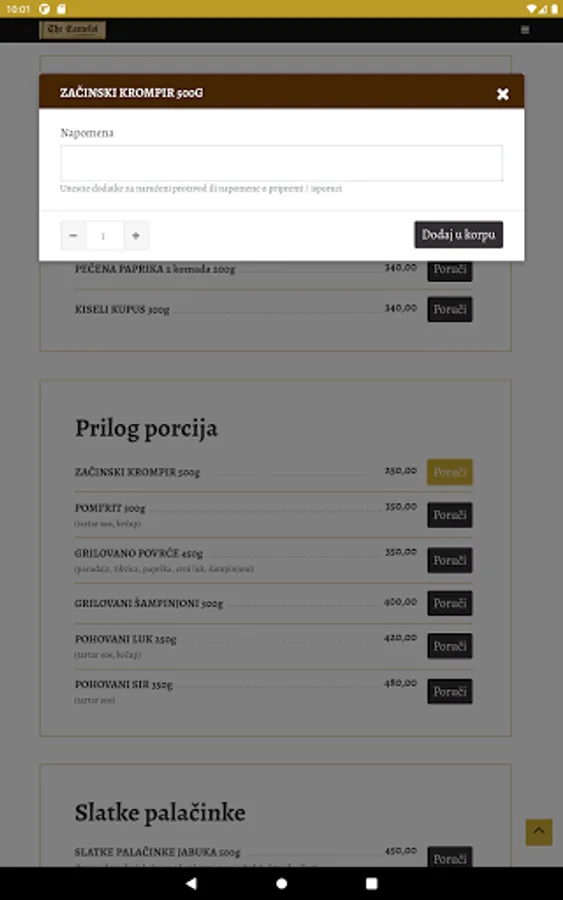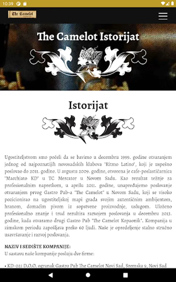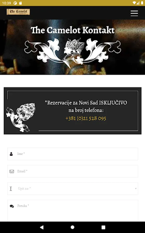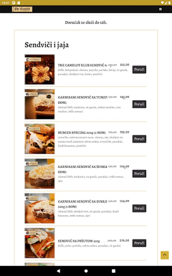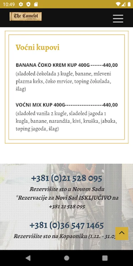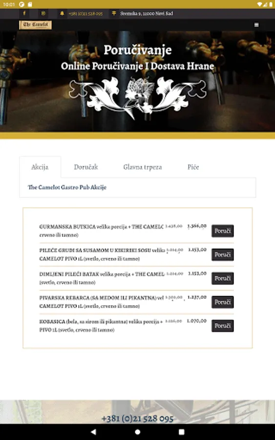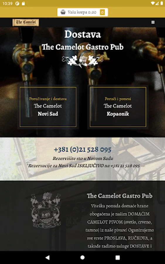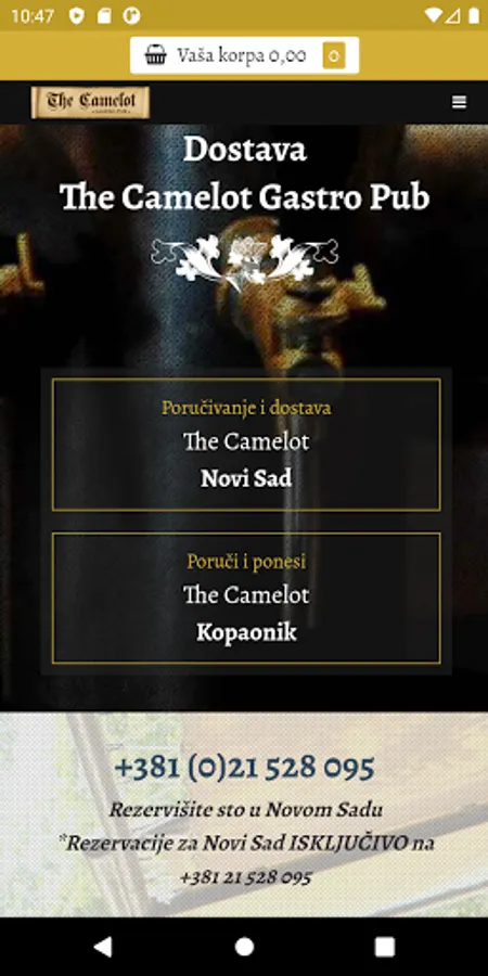 Food delivery for the restaurant The Camelot is located in Novi Sad and Kopaonik mountain.