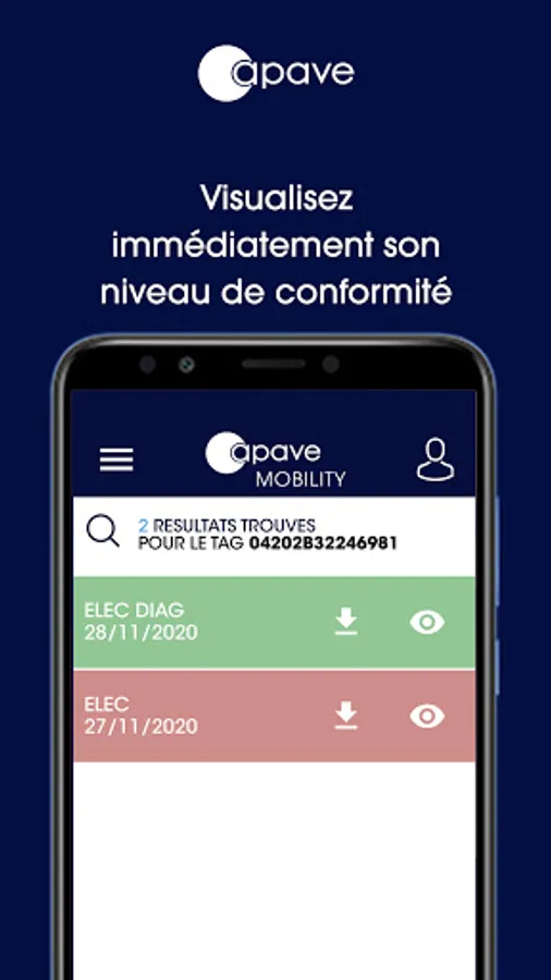 Mobile application to view the level of compliance of your equipment checked by Apave: