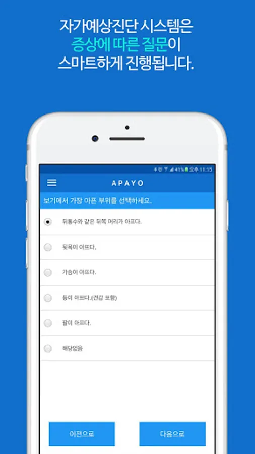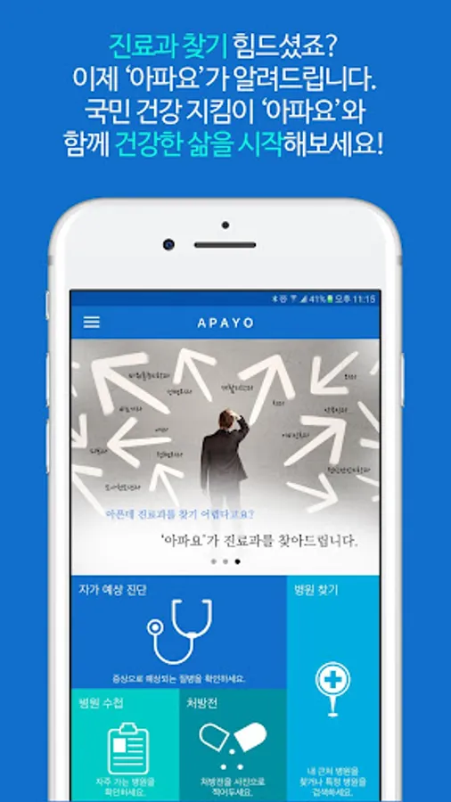 - A self-diagnostic system introduced through a questionnaire related to the symptoms deuryeoyo find the departments and hospitals to receive medical treatment.