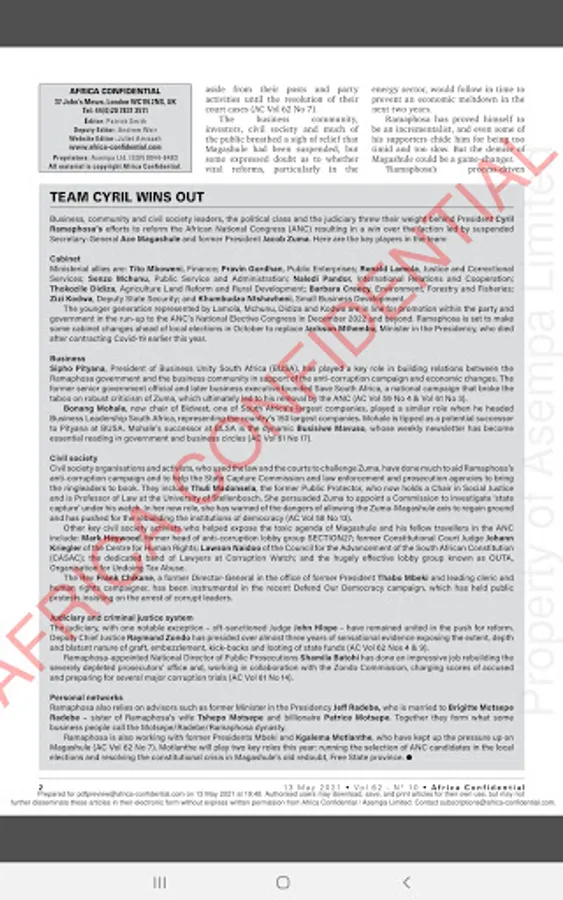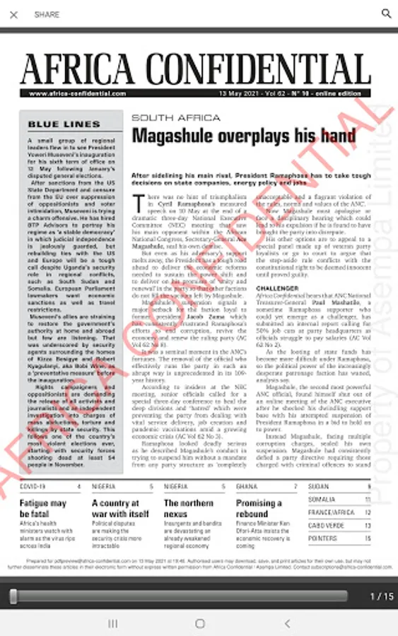 Africa Confidential provides the most authoritative commentary and analysis of political and economic affairs from throughout the continent. Published regularly since 1960.
