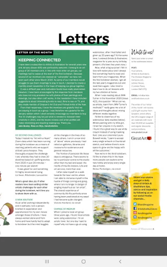 Published for almost 25 years, each issue of Artists & Illustrators magazine contains a colourful palette of practical ideas, expert technical advice and useful art materials tests.