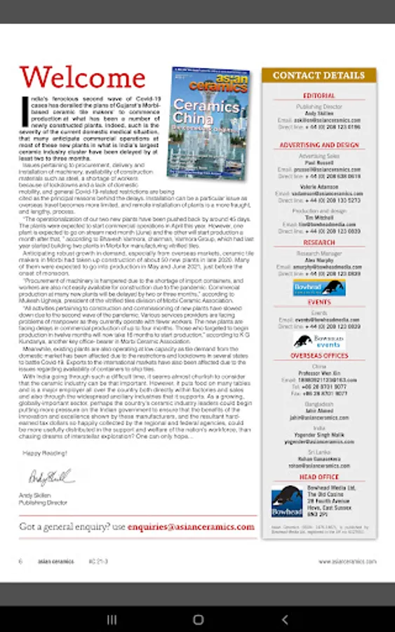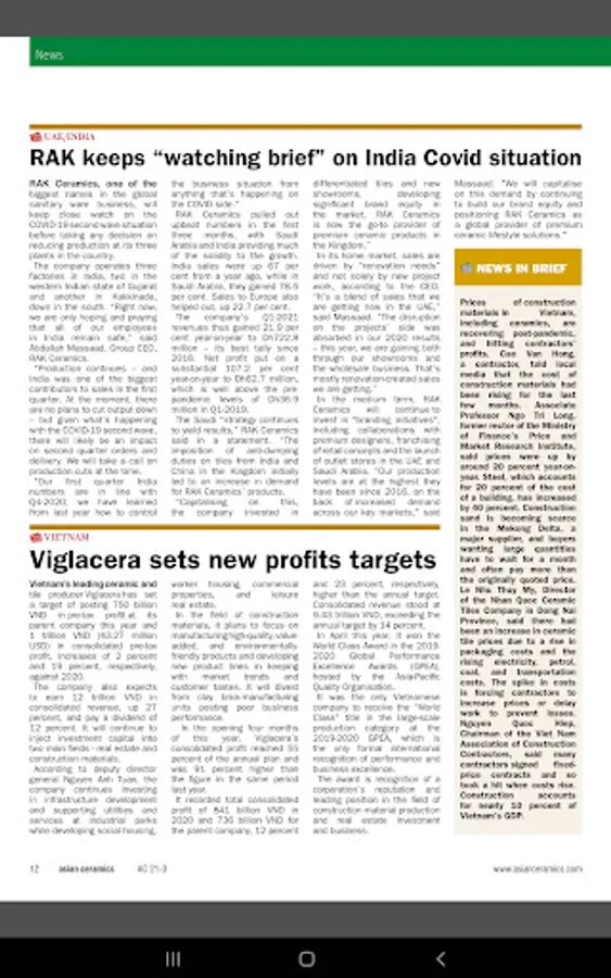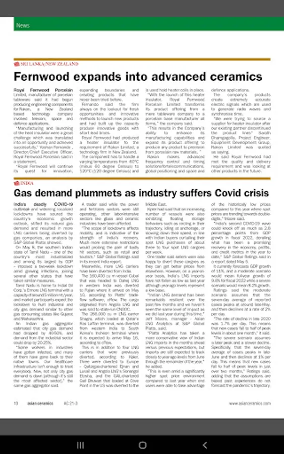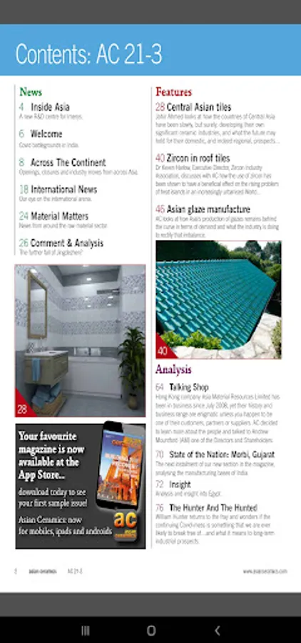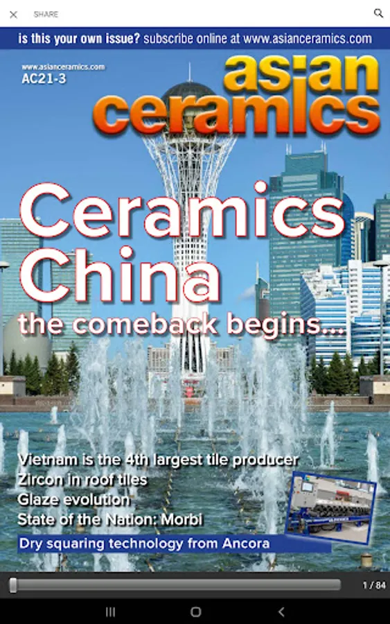 Asian Ceramics magazine is the leading industry title for the world’s ceramics industry professionals. With a dedicated focus into market trends, supply and demand and technological developments across all of Asia, the Asian Ceramics App ensures you are kept fully up to date with the information you need to make strategic decisions with regards to your ceramics business. Covering the entire continent, from Turkey to China, Asian Ceramics supplies “must have” market research on a monthly basis, as well as news, views and industry interviews with key leading personnel in Asia’s – and the world’s – ceramics industries. Whatever your location, the ceramics manufacturing industries of the Asian continent are having a direct influence on your local and regional industry. Make sure you don’t miss the opportunities that this exciting sector presents, or are caught unawares by the challenges it causes. Download the Asian Ceramics App and keep yourself informed and at the cutting edge.