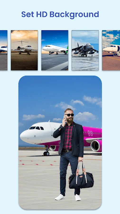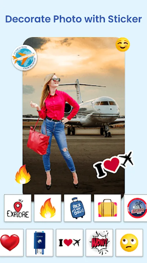 Airplane photo background frame app to decorate photos and get feel pleasant model look.