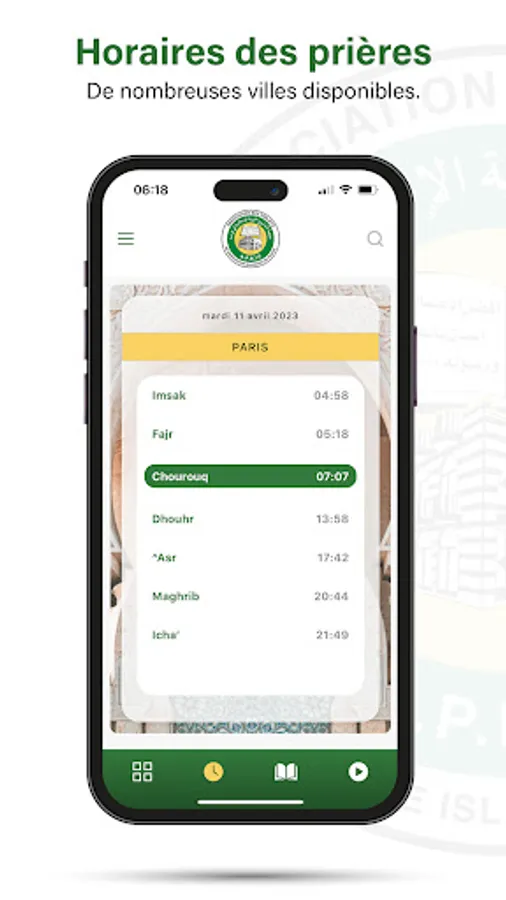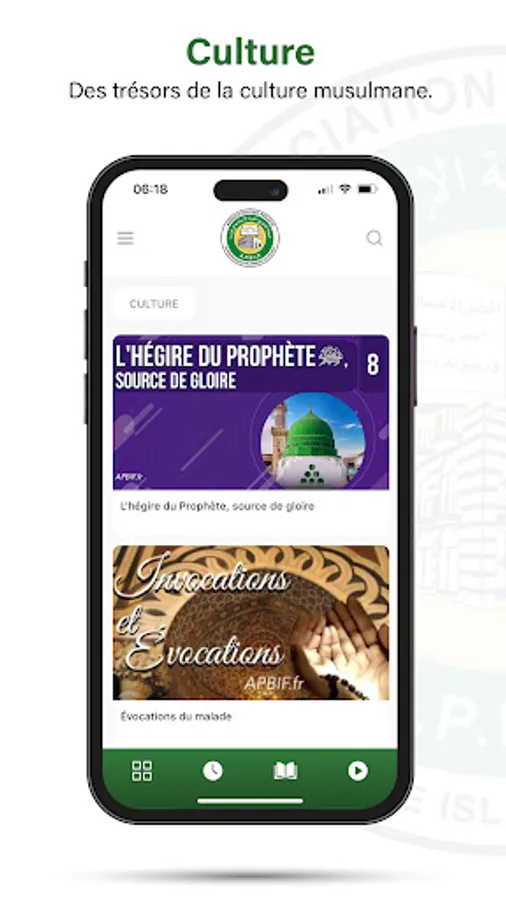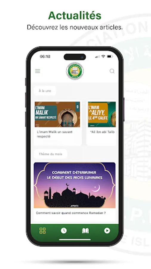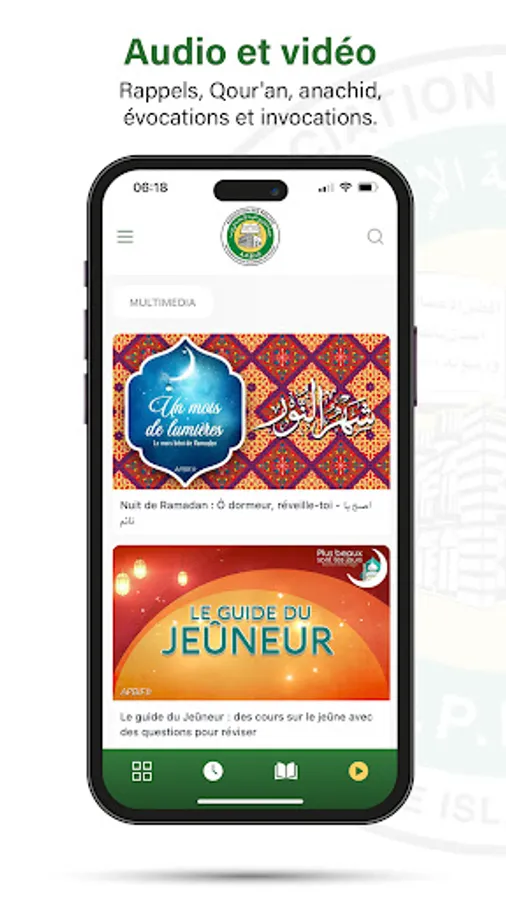 Prayer times. Listen to the Qur'an (Quran). Friday Khoutbah. Invocations and evocations. Islamic reminders. Explanations of Muslim holidays. How to pray ? Muslim history. Ramadan calendar. Anachid.