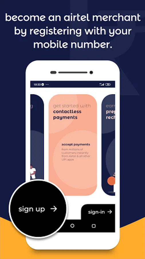 Register using your mobile number and become an Airtel merchant in minutes, for free. Get a customised QR code for your shop & business instantly.