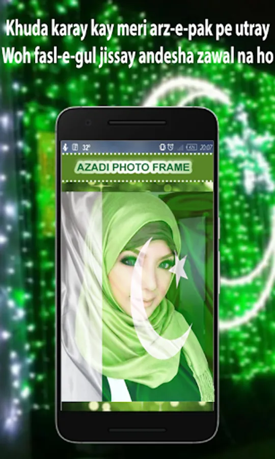 14 august the day when a new state carved on the face of earth with the name given “a place of sacred cure” the announcement of the new state was a long caravan full of impediments and anarchy. Muslims were being tried to be crumbled by English and Hindu men. but this was the day when Muslims caravan got harbor. Under discussion application is for the celebration for this enormous supremacy. by using this app one can edit pictures by mixing it with Pakistani flag and can store it and use it any where.