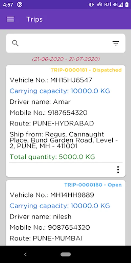 Logistic user can perform vehicle registration to create a vehicle master. Similarly, the user can also complete the driver registration process.