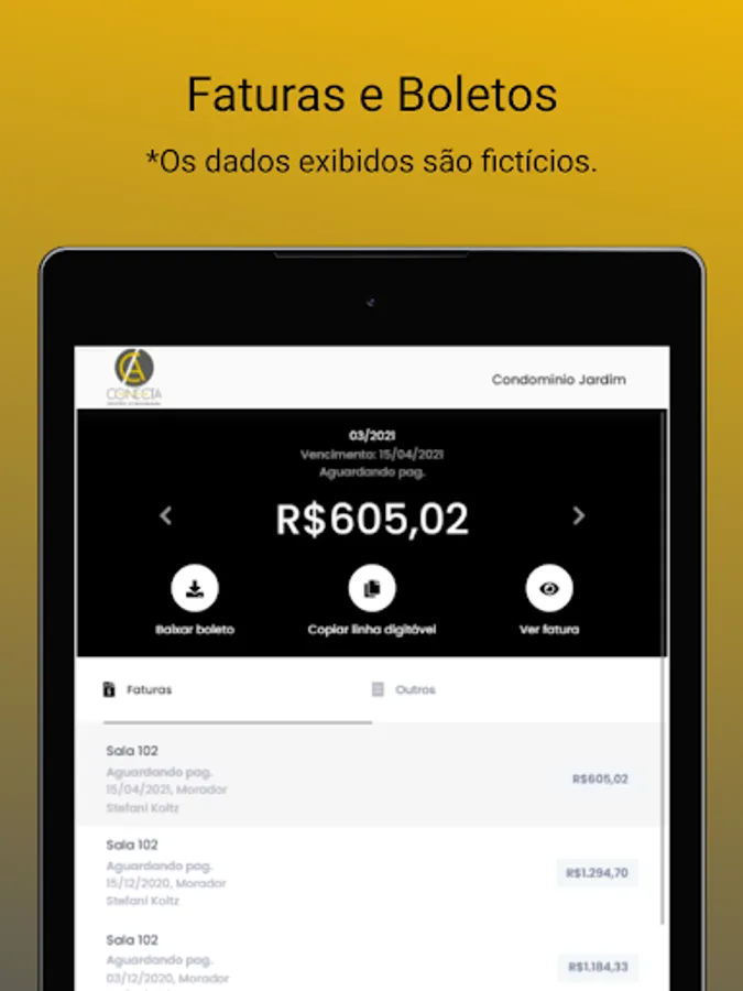 With the Conecta Gestão Condominial application you will be able to perform several actions: