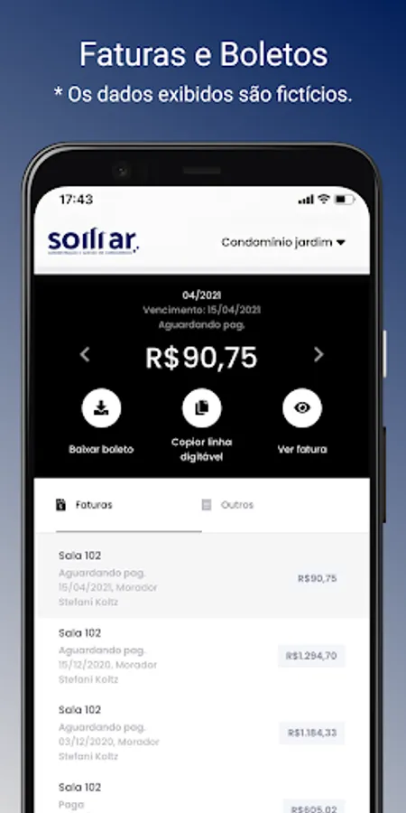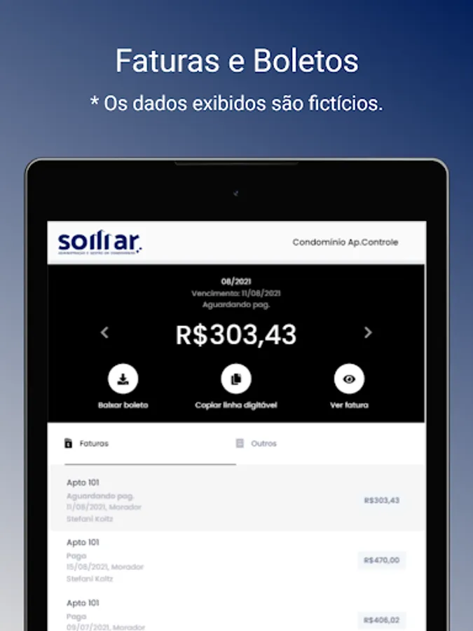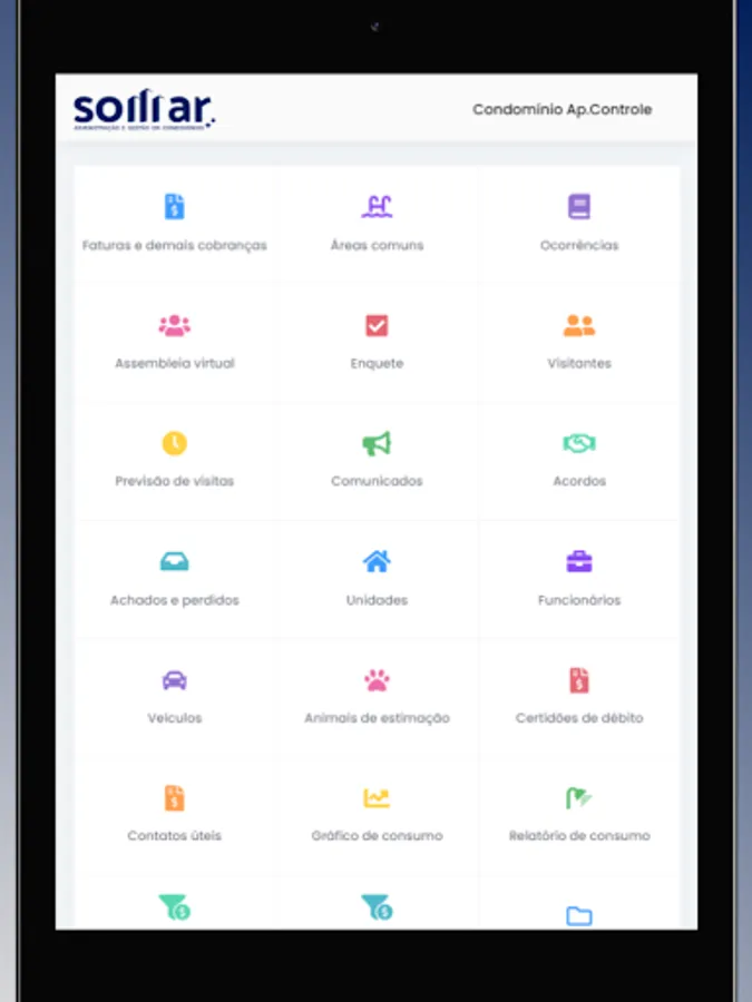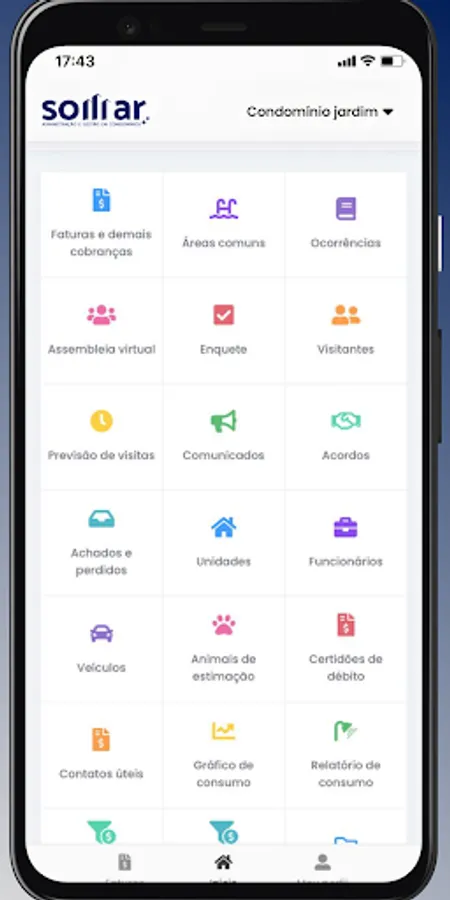 With the Somar Condomínios app you will be able to perform several actions: