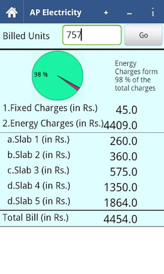 4.Bill calculator helps to calculate the bill for the units specified along with graphs for residential lines