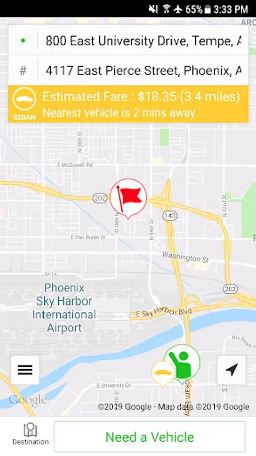 • Get a fare estimate by entering both pickup and destination addresses