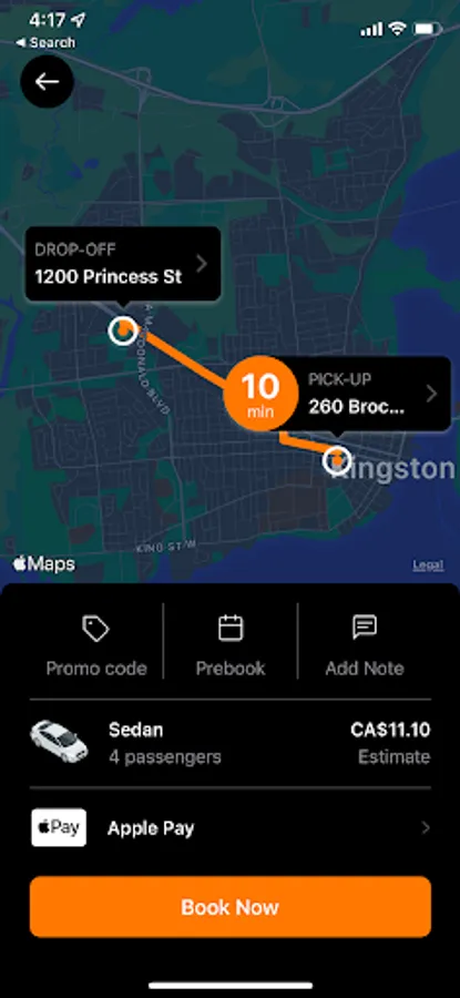 • Enter your destination address (this allows us to provide an estimated fare amount)