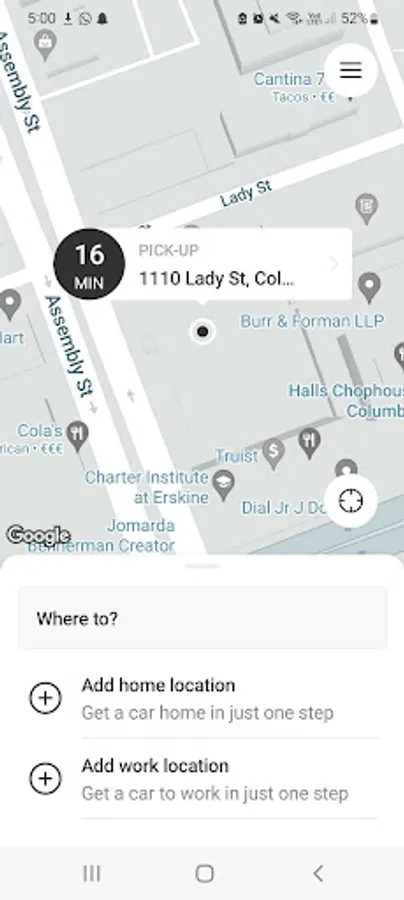 • Enter your destination address (this allows us to provide an estimated fare amount)