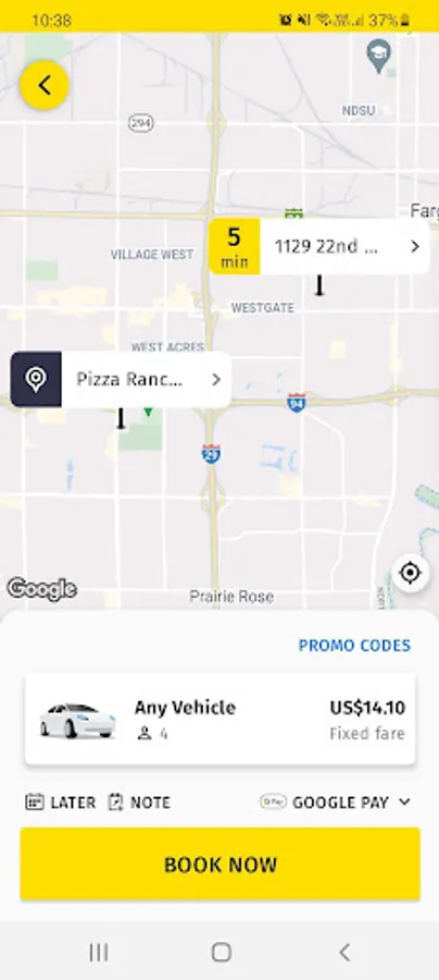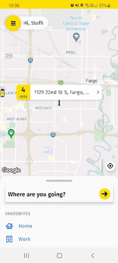 • Enter your destination address (this allows us to provide an estimated fare amount)
