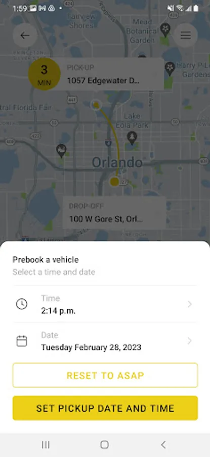 • Enter your destination address (this allows us to provide an estimated fare amount)