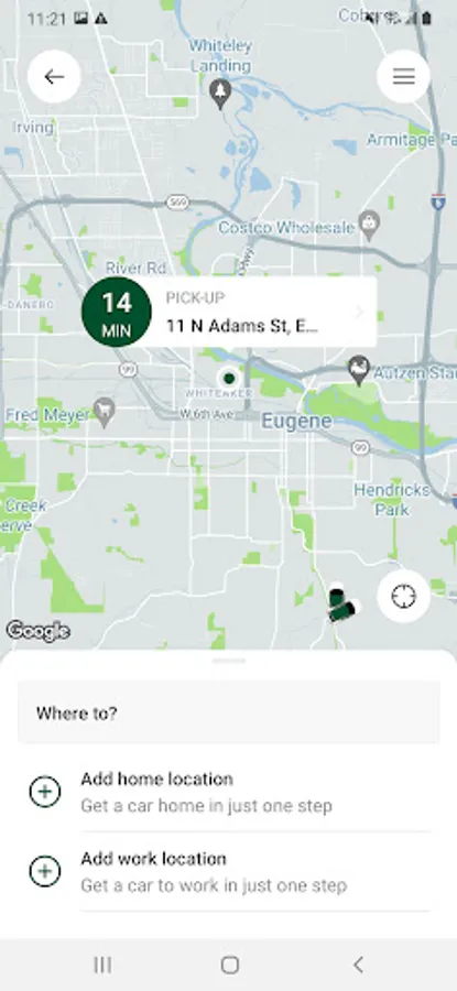 • Enter your destination address (this allows us to provide an estimated fare amount)