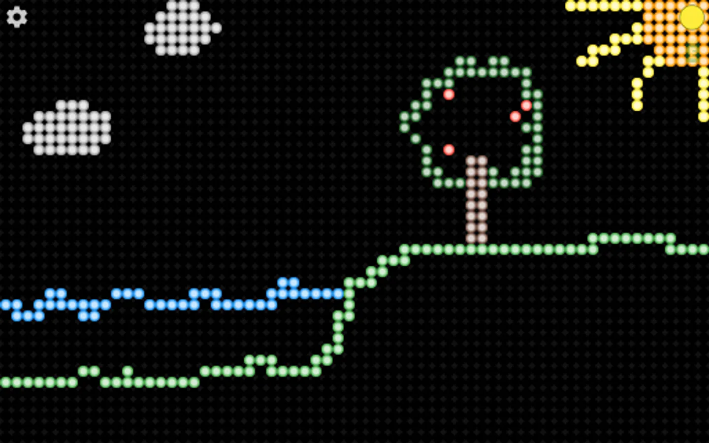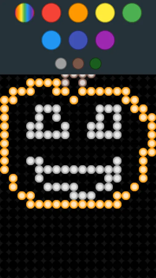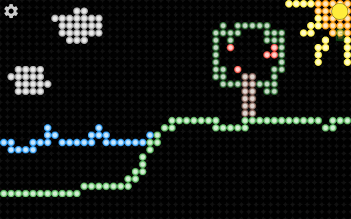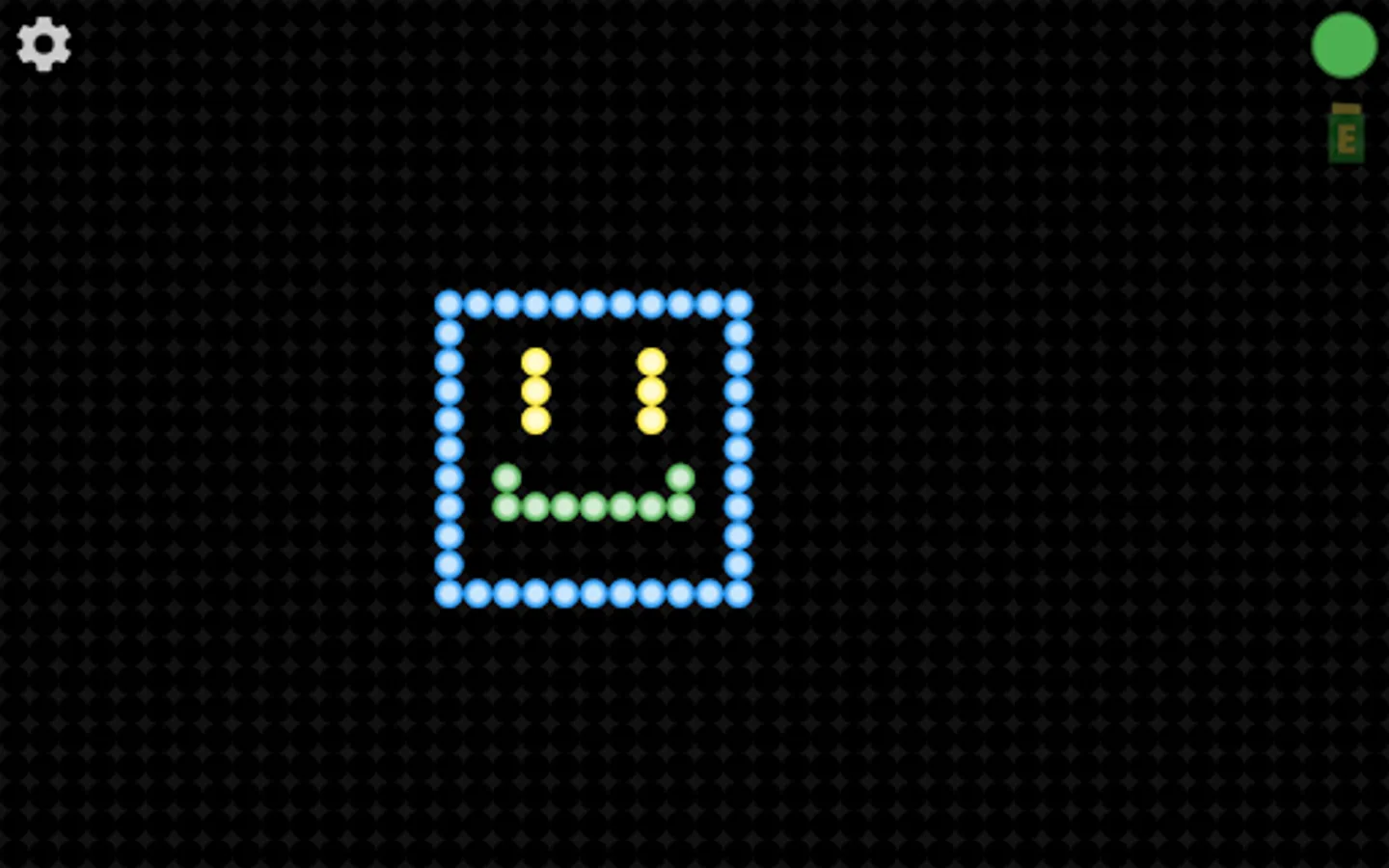 In Bright Lights, you draw pictures by placing colored dots on the screen. There are many different colors to choose from. When you are done, you can either start over or save your picture to the gallery so you can share with your friends and family!