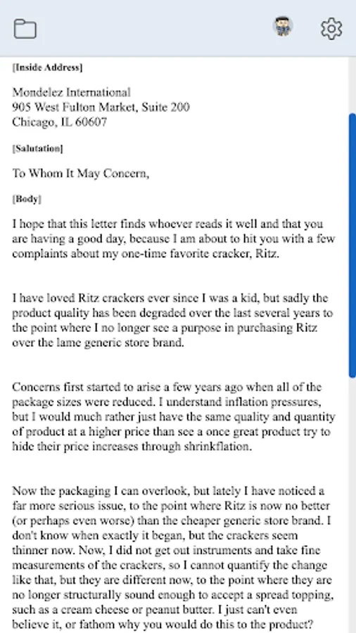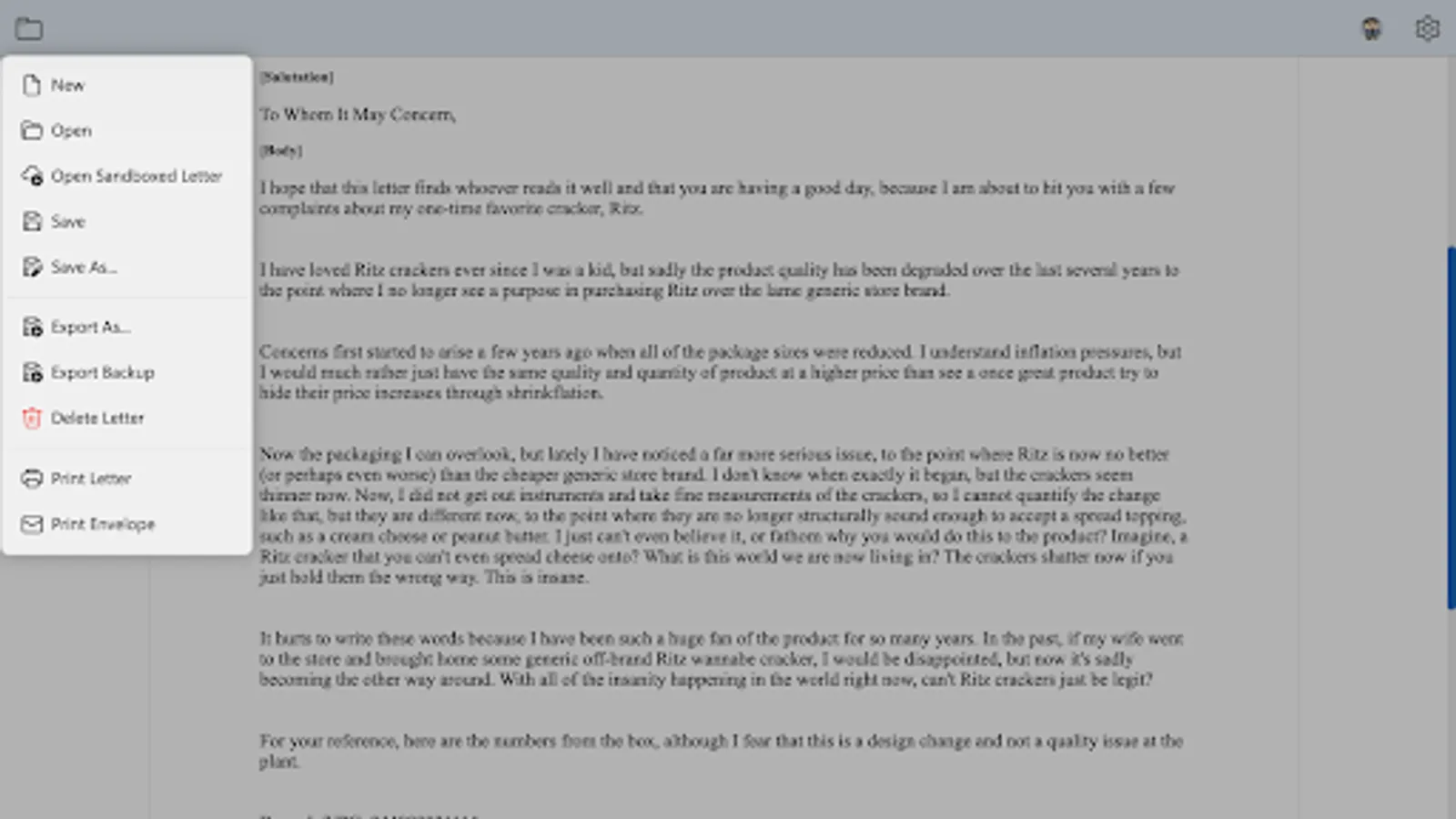 In conclusion, EZ Letter Maker makes it simple to create and edit professional, standards compliant business and personal letters without the need for complicated word processing software. Give it a try, and leave feedback on features you would like to see added or improvements you would like to have made!