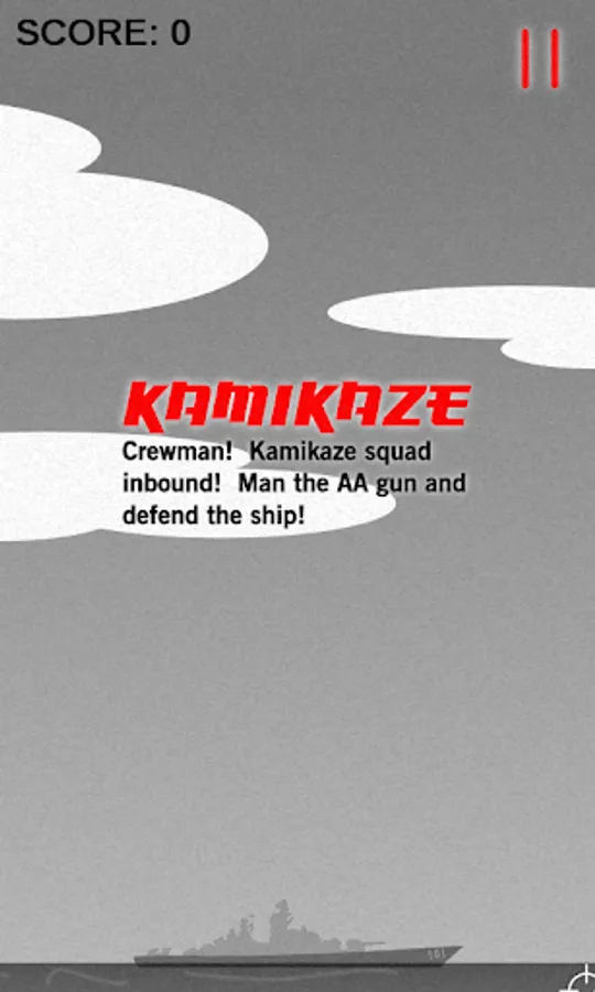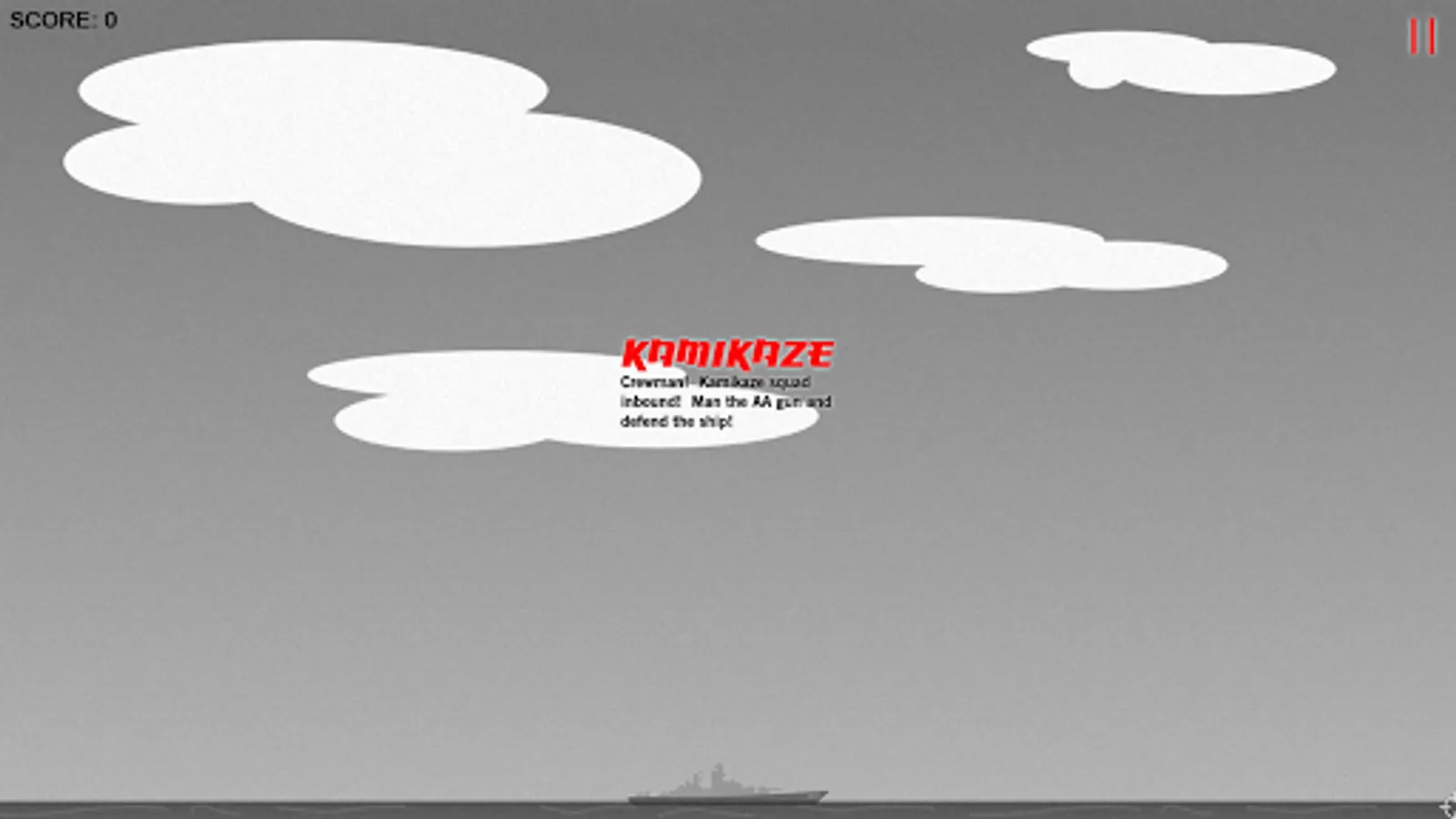 Kamikaze is a fast paced action arcade free game based on the WW2 battle of Okinawa in the Pacific theater. You are a U.S. naval AA gunner and you must shoot down the oncoming Japanese air strike force. Tap on the screen to fire your anti aircraft gun at wave after wave of fighter planes. If your ship gets hit, you lose!