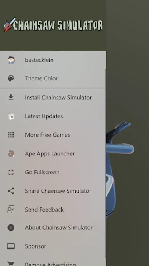 It's a chainsaw simulation. This app shows a picture of a chainsaw and when you press down on it, it makes cutting noises and vibration. Use it to play fun chainsaw related games with your friends. Includes fun customization options too!