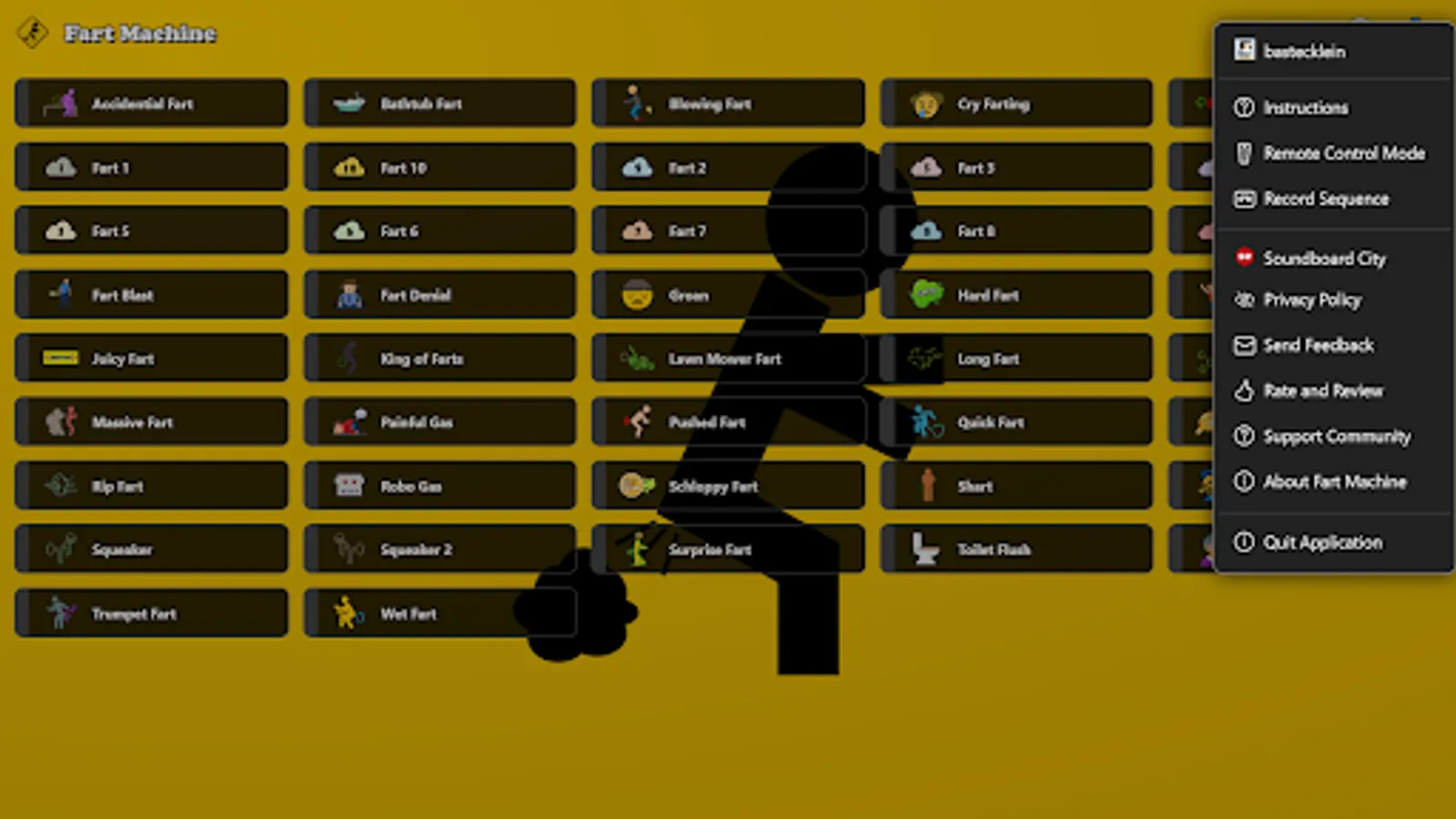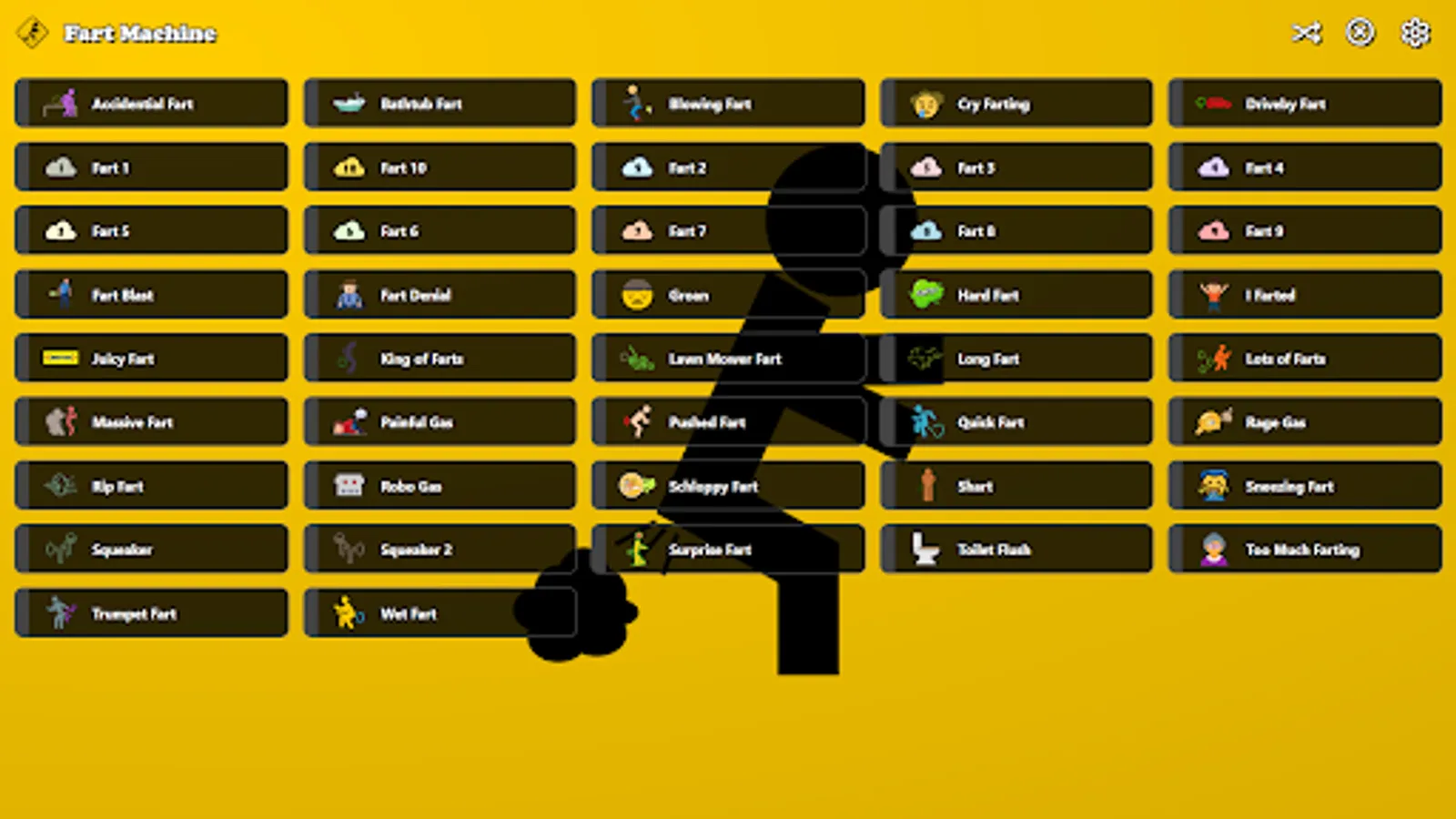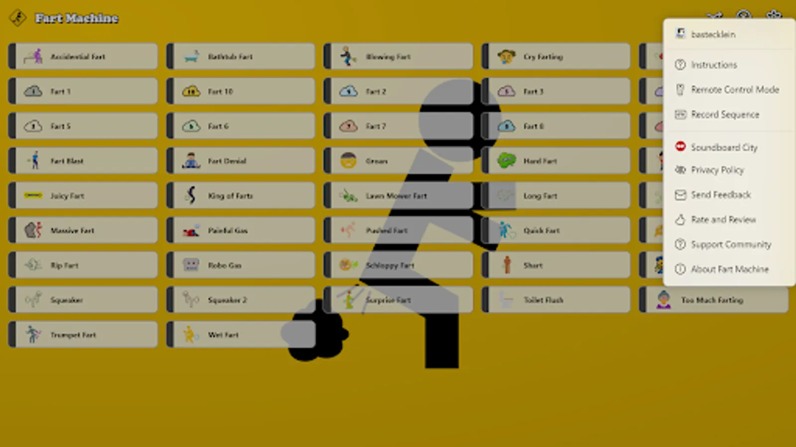 Fart Machine is a soundboard app that has fart sound effects. Tap the buttons to play fart noises. Long press on a sound for additional options.