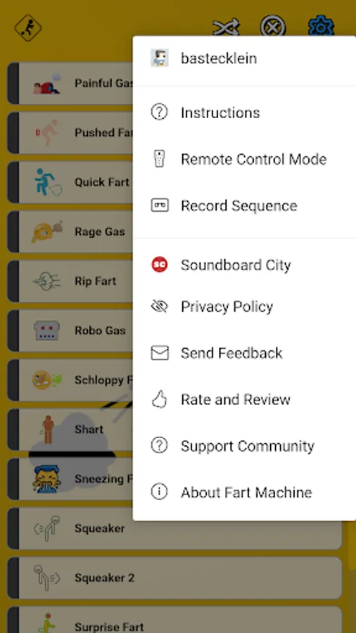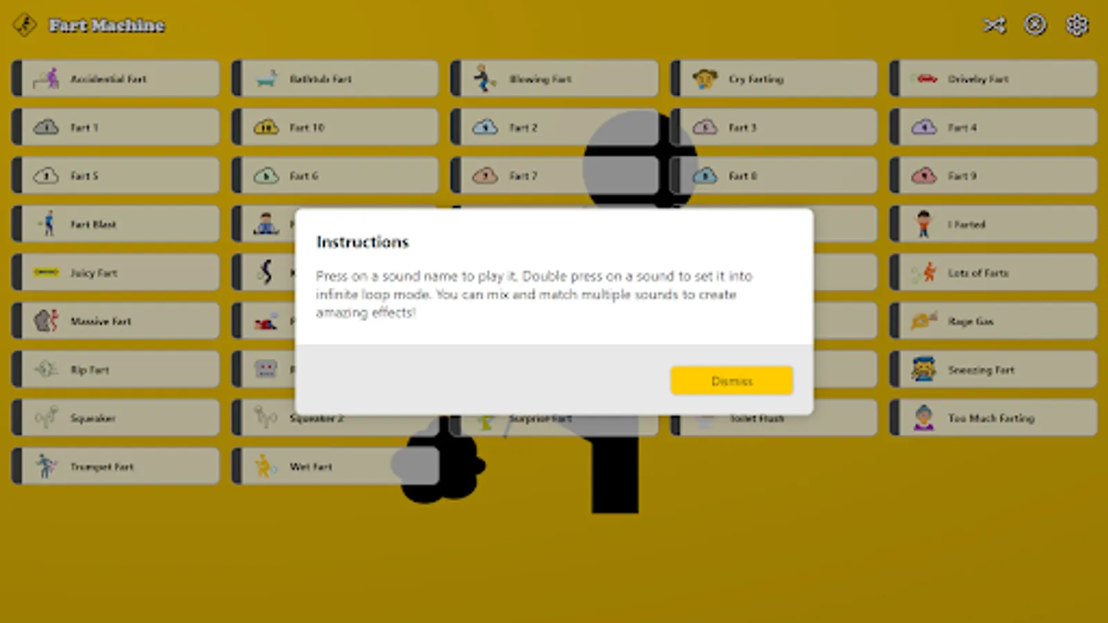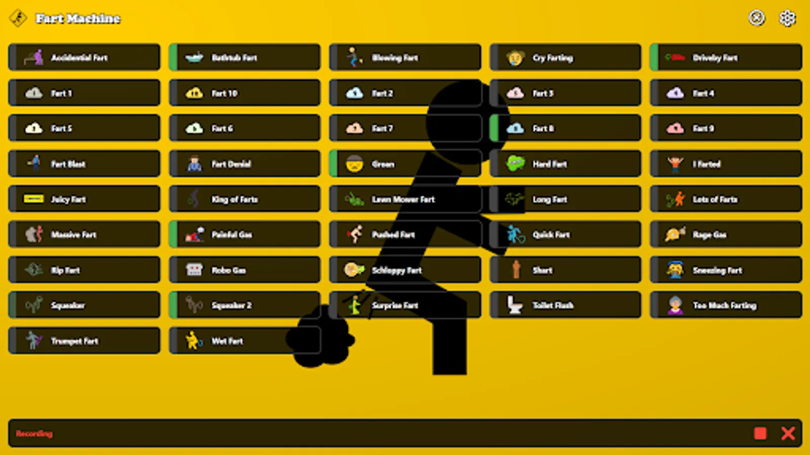 Fart Machine is a soundboard app that has fart sound effects. Tap the buttons to play fart noises. Long press on a sound for additional options.